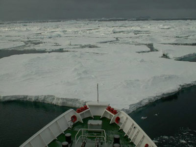 הקפטן שלנו, החליט שהוא עובר באמצע. מנווט לו בין הקרחונים. נכנס בהם. מזיז אותם. הוא חוצה. אגב, הייתה ספינה לידנו שבאמת פרשה ולא הגיע ליבשת באותו אזור.