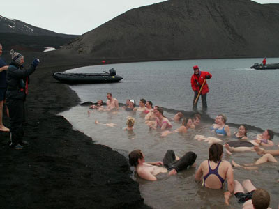 האזור שוקק פעילות געשית, אז יש גם נביעה של מים חמים. חמים מאוד. באמצע החוף, באמצע המים הקפואים.