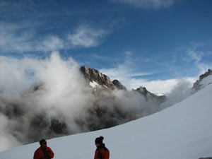 ממשיכים ללכת ואני שואל את נמו הדובר שלי מתי מגיעים למרות שאני דובר ספרדית לא רעה יחסית לישראלים ואני מבין שכשנסיים את העלייה הזו, שאגב נראית כמו גיהנום, מגיעים לטיפוס הקיר האחרון עליו כולם מדברים, המתאיים מטר האחרונים של הטיפוס לפסגה המיוחלת. נעשה מעט מואר כי הזריחה כבר ממשמשת ובאה וכל הקבוצות מתכנסות למרגלות הקיר לקראת הטיפוס האחרון. פה, בקיר בעל השיפוע של 78 מעלות אין ללכת, פה תוקעים רגל רגל ועם היד החזקה את הגרזן בשלג בכל הכוח ומושכים למעלה. פה כל צעד הוא מהלך 4X4 מחושב הייטב וכל טעות תגרום לך להחליק 30 ס"מ תעלה בחצי ליטר אויר וחצי דקה מנוחה. הטיפוס האחרון בן מתאיים המטרים ערך שעה שבה שעל רודף שעל וכנל לגבי הצעדים, הפעמים, המהלכים וכיוצא בהם. אני לא זוכר הרבה ממנו פרט לפרטים ותמונות קטועות שבאחת מהן אני מרים את ראשי לכיוון EREN שהצטרף אלינו לקראת הטיפוס האחרון וממלמל באנגלית שהרגעים הקשים הם החשובים ובללה בלה, ובתמונה אחרת אני זוכר עצמי מרים את הראש לפסגה המיוחלת ומחליט לתת בכל הכוח ומנסה להאיץ למהירות שיא לעשרים מטרים האחרונים שנשארו לי שזו הטעות הנוראית מכל ומיד לאחר ארבעה מטרים נצמד חזק עם הגרזן לשלג ומתנשם ולא יכול לזוז! בחמשת המטרים האחרונים גופי שב לעצמו ואני מטפס בכל כוחי מושך אחרי את נמו שהיה קשור אלי בחבל בכל כוחי לאחר שעזר לי כל הדרך, הוא מגיע למעלה ושנינו נשכבים על השלג ומתחבקים, מחליפים מילות אהבה שלא היו מביישות את דוד ויונתן היפים והנאהבים בחייהם ובמותם לא נפרדו.