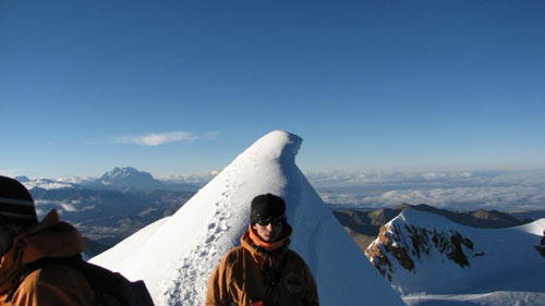 הגענו! אנחנו בפסגת ההר השני בגובהו בבוליביה בגובה של 6088 מטרים מעל פני איזה אוקיאנוס שתבחרו. הרבה לפני שאני מתרכז בצינו וגרינש או בנוף זה מגיע, האצבעות מתחילות להפשיר מהשמש. זה מתחיל ביד שמאל מאחר והיתה צמודה לשלג עם הגרזן ורק עם כפפה אחת. להשוואה אמא ואבא או כל עושי הסקי שבניכם, אני מנסה לבלום את הצעקה אבל לא מצליח, לא כאב לי כך מאז כתה ח’ כששברתי את עצם הבריח בהתרסקות של בוגי כי הייתי כזה קמצן וחשבתי שבוגי קטן הוא מספיק טוב. זה נגמר ביד לאחר שלוש דקות ואז מתחיל במקביל ברגל שמאל ומייד ברגל ימין. לא נעים לי לשבת לייד סנדרה שאגב הגיעה לפני כי היא היתה בקבוצה של צינו הבאפאלו, או כי היא גרה פה חצי שנה ורגילה לגובה או כי סתם מסיבות שונות שלא בא לי להודות בהן ולצעוק כמו תינוק, לא יודע שחמש דקות קודם גם היא עברה את אותה סיטואציה ובכתה בדמעות קנדיות, וכך גם כולם סיפר לי צינו בחיוך. כשכל התהליך הזה מסתיים אני מרים את ראשי ורואה את העננים באור בפעם הראשונה מתחתיי איזה קילומטר או יותר, רואה את העיר לה פאז, רואה את אגם טיטיקקה, הוא האגם הגבוה בעולם, רואה את צ’ילה ואת כל ההרים הפשוטים שאני בז להם כרגע. אני מחבק את גרינש וצינו, שידוע בהיותו גרוע ברגעי מבוכה שכאלה, אבל לא אכפת לי ומאושר עד השמש כי השמיים כבר מתחתינו ומצטלם עם דגל ישראל.