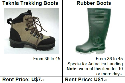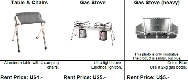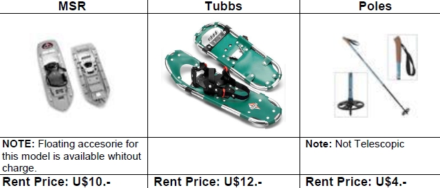 התעלמו מהמחירים שאינם מעודכנים אלא רק על סוג הציוד שניתן להשכיר. את המחירים המעודכנים תבדקו בחנויות ציוד השכרת הציוד בהתאם לסוג הציוד, התקופה והעונה.